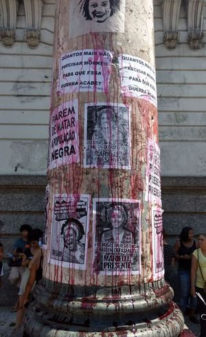 El 14 de marzo de 2018 fue asesinada en Río de Janeiro Marielle Franco, de 38 años. Ella era concejala del Partido Socialismo y Libertad (PSOL), negra, de la favela, bisexual y feminista. Defendía la igualdad racial, de género y los derechos de los sectores excluidos de Brasil. Asimismo, era una activa denunciante de la intervención militar de Río de Janeiro, de la exclusión social y de la violación de los derechos de los jóvenes negros de la favela, estigmatizados y recurrentemente encarcelados y asesinados. Para muchos, era un símbolo de renovación de la política brasilera. Dentro de sus propuestas políticas también se encontraban combatir la violencia contra la mujer y combatir la homofobia, visibilizar a las mujeres negras, la visibilidad lesbiana, el aborto legal y atención humanizada a la mujer, entre otros.