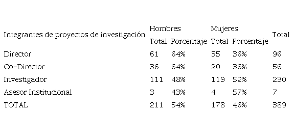 Integrantes de proyectos de investigación por género (proyectos en ejecución)