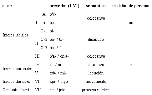 El trabajo de Black & Schram (2014) retoma el tema de la formación del tiempo y aspecto en los verbos simples del mazateco de Jalapa de Díaz, los cuales se clasifican en cinco clases verbales. Un ejemplo está representado por los verbos de la primera clase, los cuales normalmente toman el prefijo /ki2-/ en el pasado distante, pero si la base verbal comienza con /β/, ésta cambia a /k/, como en el ejemplo siguiente: /βa2næ̃1/ 'él lava' → /ki2ka2næ̃1/ 'él lavó'.
