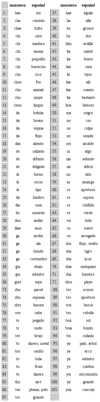 Pike, Eunice Victoria & Cowan, Florence Hansen. 1957. Vocabulario mazateco. México: Instituto Lingüístico de Verano. http://www.sil.org/resources/archives/47840(Consultado el 13-09-2015)
