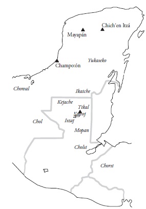 Antes de la llegada de los españoles, los mopanes e itzáes, enemigos mutuos, ocuparon territorios en el Petén y Belice (ver Mapa 1). Estos grupos realizaron varias migraciones del norte a la región del Lago Petén-Itzá en Petén, Guatemala. En este proceso, también participaron los itzáes de la región de Chichén Itzá y los kowojes de Mayapán que también se consideraban enemigos (Rice & Rice 2009). Los itzáes mantuvieron contacto con los yucatecos hasta tiempos modernos. Como se ve en el mapa, los grupos yucatecanos estuvieron rodeados por los cholanos, chontales (yokot’anob’) al noroeste; los ch’oles al oeste y los ch’olties y ch’orti’es al sur, y por lo general, sus relaciones eran belicosas (Jones 1998).