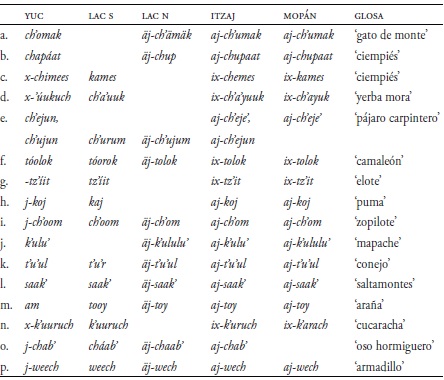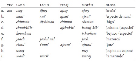 Palabras clave: proto-yucatecanoproto-yucatecano,yucatecoyucateco,itzajitzaj,lacandónlacandón,mopánmopán.