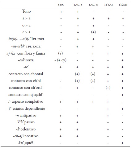 Un resumen de los cambios y diferencias entre lenguas yucatecanas aparece en el Cuadro 32.