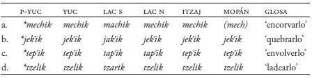 Keywords: Proto-Yucatecan, Yucatec, Itzaj, Lacandon, Mopan.