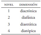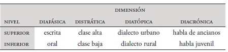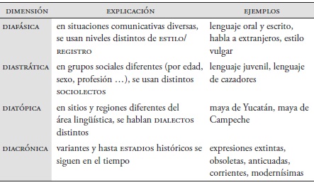 Dentro de una lengua, la variación se despliega a lo largo de ciertas dimensiones que constituyen la arquitectura de la lengua, como se presenta en el Cuadro 1 (véase Coseriu 1981).