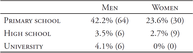Educational level. The male and female participants were grouped according to their completed educational level: primary school, high school, and university studies (see Wardhaugh 2010, for a detailed discussion regarding categories for speakers’ educational levels).