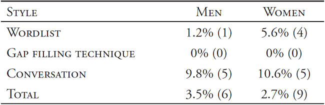 Style shifting. Speech style is considered to be a social feature of language use, and involves formal and informal uses. In formal use, we pay more careful attention to how we are speaking, whereas in informal use we pay less attention (Yule 2010). A change from one to the other by a speaker is called style-shifting. In this study, we used three methods to examine style-shifting: a wordlist (formal style), a gap-filling technique (semi-formal style) and a conversation (casual style). In the following section, we provide further details regarding these three methods.