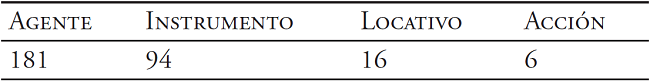 Para el caso del esquema V+N, existe una relación unívoca entre los dos componentes del compuesto, el verbo y el nombre, que determina el significado iterativo del compuesto. En este tipo de compuestos, la acción verbal se utiliza para designar metonímicamente al participante. Por ejemplo, en sacacorchos, la predicación verbal sacar corchos designa metonímicamente el instrumento, mientras que en guardabosques designa al agente de guardar bosques. Con respecto a los neologismos encontrados en Morfolex con este tipo de estructura, se procedió, a partir del contexto de uso, a identificar su referente. En el Cuadro 3, se presentan los totales para los 297 compuestos de acuerdo con el participante referido.