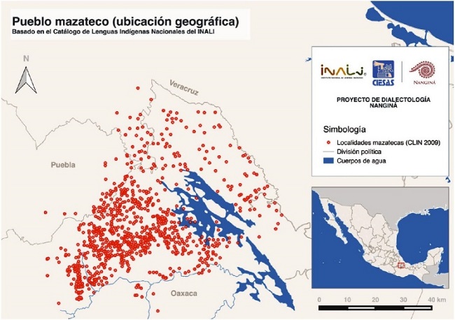 En 2008, el Instituto Nacional de Lenguas Indígenas, a través del Catálogo de Lenguas Indígenas Nacionales (CLIN, INALI 2008), incluyó a la agrupación lingüística mazateca como uno de los 68 grupos etnolingüísticos de México y propuso 16 variantes para esta agrupación. El Proyecto Nanginá de Documentación Lingüística y Dialectología Mazateca (Chávez Peón 2018) retomó esas bases con el propósito de registrar de manera detallada toda la variación geolingüística del Pueblo mazateco (ver Figura 1).