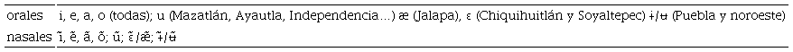 El Cuadro 2 muestra los timbres vocálicos y el contraste oro-nasal panmazateco.