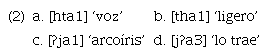 (36) Plantilla silábica de las lenguas mazatecas: (C)CV(VV)