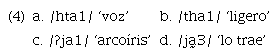 b. CV̰ “pos-glotalizada” voz laringizada = rasgo vocálico.