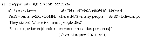 Caponigro, Ivano. 2021. Chapter 1: Introducing headless relative clauses and the findings from Mesoamerican languages. En Caponigro, I.; Torrence, H. & Zavala-Maldonado, R. (eds.), Headless relative clauses in Mesoamerican languages, 1-57. Oxford: Oxford University Press.