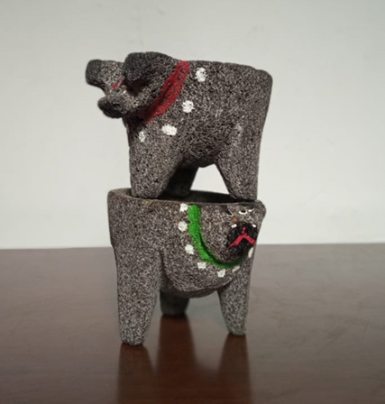 (40) Situación: Un molcajete de juguete encima de otro molcajete.