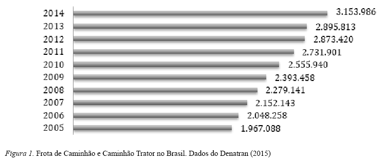 Atualmente, o Brasil conta com uma frota de mais de 3 milhões de caminhões (Departamento Nacional de Trânsito [Denatran], (2015). Em 2013, o setor de transporte, armazenagem e correios participava com 5,31% do PIB nacional (Ipea, 2015) e o número de pessoas ocupadas no TRC era de 941.646 (IBGE, 2005). Estes dados demonstram a importância do setor para a economia do país.