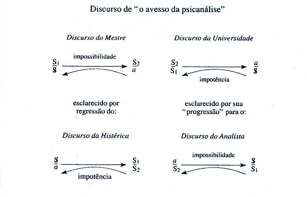 “Se tivessem um pouco de paciência, e se aceitassem que nossos improvisos continuassem, eu lhes diria que a aspiração revolucionária somente tem uma chance, a de culminar, sempre, no discurso do mestre. Isto é o que a experiência provou. É o que vocês aspiram como revolucionários, a um mestre. Vocês o terão”. (Lacan, 1969-1970/1992, p. 196)