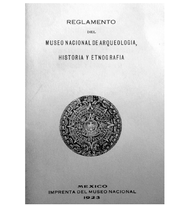 En diciembre de 1913 se expidió un nuevo reglamento que nombraba a la institución como “Museo Nacional de Arqueología, Historia y Etnología”, la cual contaría ahora con un departamento de etnología. Finalmente, en 1919 se publicó un nuevo reglamento que renombraba al museo como “Museo Nacional de Arqueología, Historia y Etnografía” con un departamento de Etnografía aborigen y otro de Etnografía colonial y moderna. La alternancia de nombres -etnología y etnografía- es evidente en todo tipo de documentos históricos relacionados con el Museo durante esos años. En un mismo documento se llegaban a utilizar los dos términos para referir al mismo departamento. Un caso importante es el del “Plan de Organización del Instituto Nacional de Artes e Industrias Etnográficas”, un documento publicado en 1920 por el jefe del departamento de Etnografía aborigen, Miguel Othón de Mendizábal [Sierra 1994], el cual, en el cuerpo del texto, indica su anexión al Departamento de etnología aborigen [Castillo Ledón 1924].