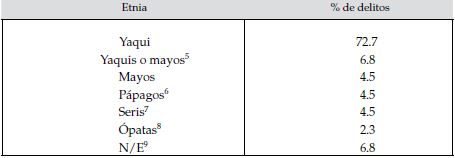 Resulta intrigante que casi cien por ciento de los casos presentados es sobre yaquis, excepto dos, en los cuales los implicados eran indígenas mayos, y otros dos en los que no se especifica el origen étnico. En ocasiones, aunque no estuviera explícito en el expediente, la etnicidad del implicado se podía inferir por el apellido; si era Buitimea, por ejemplo, seguramente era yaqui, aunque también podía ser mayo. Por esa razón en algunas ocasiones fue difícil establecer la distinción.