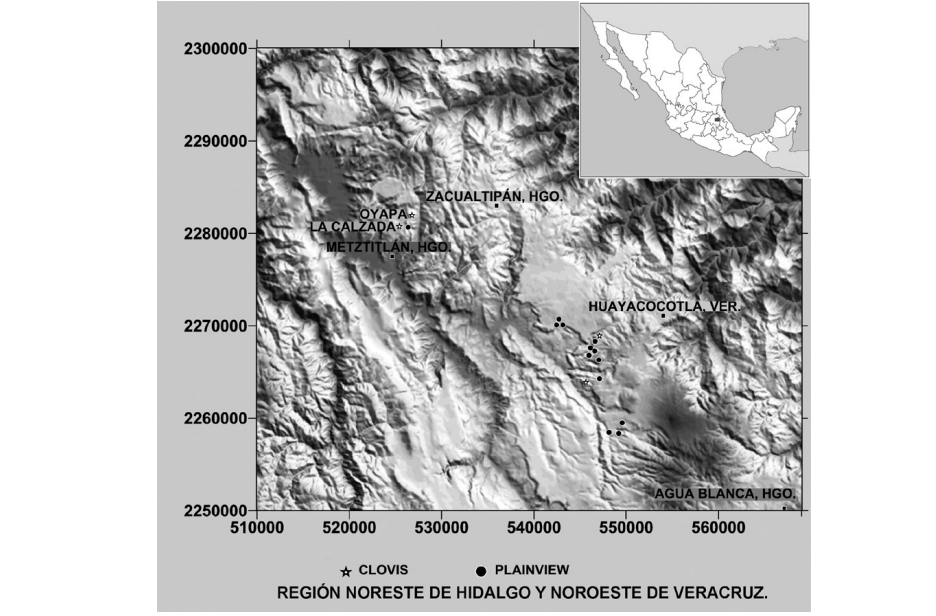 En cuanto a la ocupación Plainview, en la región hubo dos etapas, de las que la más reciente es la que tenemos en el sitio de La Calzada y en muchos otros sitios, en Hidalgo y en Veracruz. La primera etapa la hemos podido observar de forma muy limitada por materiales aislados en superficie y en excavación en el sitio de El Palmar, Huayacocotla, Veracruz, donde, en la base del depósito, hemos encontrado algunas lascas de pedernal asociadas a dientes de caballo que nos remontan a fines del Pleistoceno [Cassiano et al. 2015]. El patrón de asentamiento de la ocupación Plainview en nuestra opinión se rigió por otras pautas.
