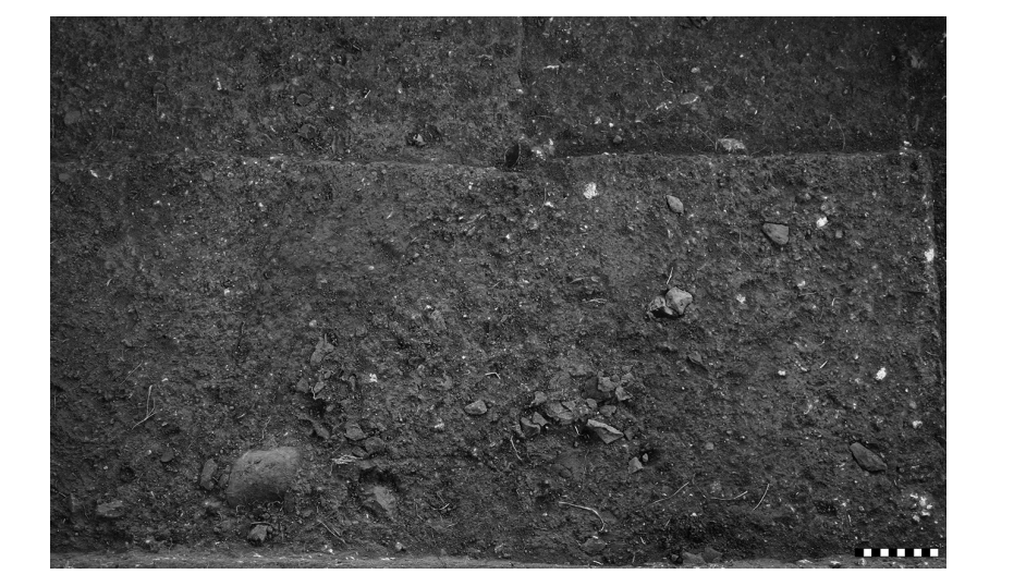 En el sitio La Calzada se identificó una sucesión estratigráfica de tres paleosuelos, cuya secuencia cronológica se expresa con claridad en el pt, donde el paleosuelo 3 es el más profundo de la sucesión y por lo tanto el más antiguo. El color pardo claro y sus características macromorfológicas contrastan notablemente con el color oscuro, estructuras en bloque angulares y la gran cantidad de arcilla de los dos suelos que sobreyacen (ver foto 5).