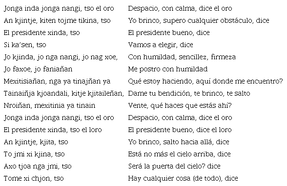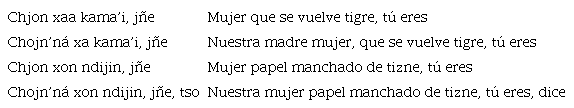 Durante los casi cuatro años de investigación de campo en Huautla, Santiago Cortés y el autor hemos podido grabar no más de tres ceremonias durante las cuales el curandero/a entonó un canto. El de Baldomero es explícito en su carácter de búsqueda, diferentemente de los de María Sabina u otro que hemos podido estudiar, en los que la sabia describe y enumera sus capacidades y los diferentes seres con los que se identifica, de manera similar al pequeño extracto que se proporcionó arriba.12 Debido a los pocos ejemplos que tenemos, no es posible traer conclusiones acerca de la diversidad de los cantos, en términos de su estructura y contenido, pero parece que por lo menos hay dos manera de expresarse. Por un lado la vigorosa voz de María Sabina reclama los poderes de los ancestros, animales y otros elementos de la naturaleza hablando en tercera persona, como desplazando su propia identidad en varios seres (nahuales, en términos de la antropología mesoamericanista). En otros casos, el cantor describe su situación presente y perdida y su afán para resolver problemas y su propia condición de ignorancia. De toda forma, lo que estos cantos permiten es acercarse de una manera subjetiva y reflexiva a la experiencia de las ceremonias menos públicas, pero sí más sagradas. Como vimos, la capacidad de transformarse en animales es indicada explícitamente en una glosa en el Códice Borbónico, p. 31, y se hace patente en las muchas representaciones híbridas en el Códice Borgia.