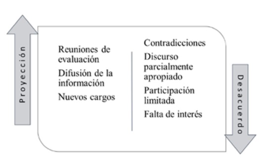 Como se ilustra en la figura 3, al interior del grupo de promoventes se expresan desacuerdos, contradicciones e incertidumbre por la manera en cómo se está llevando a cabo el proceso para el cambio de régimen en la elección de autoridades. Entre los principales señalamientos está la falta de apropiación del discurso autonómico, que a su vez es causa de desinterés y limita la participación. Como consecuencia, el conflicto es percibido, es confrontado, pero también está dando como resultado una valoración del proyecto autonómico.