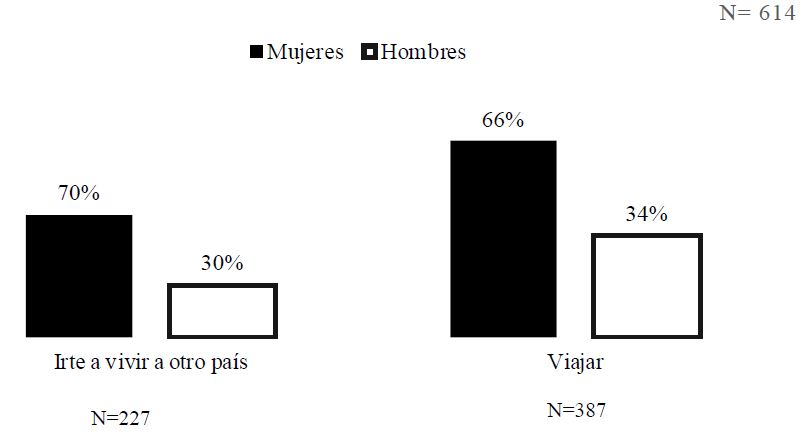 En este caso, tanto para los hombres como para las mujeres la aspiración de viajar es la más importante, mientas que irse a vivir a otro país se prefiere en segundo lugar.