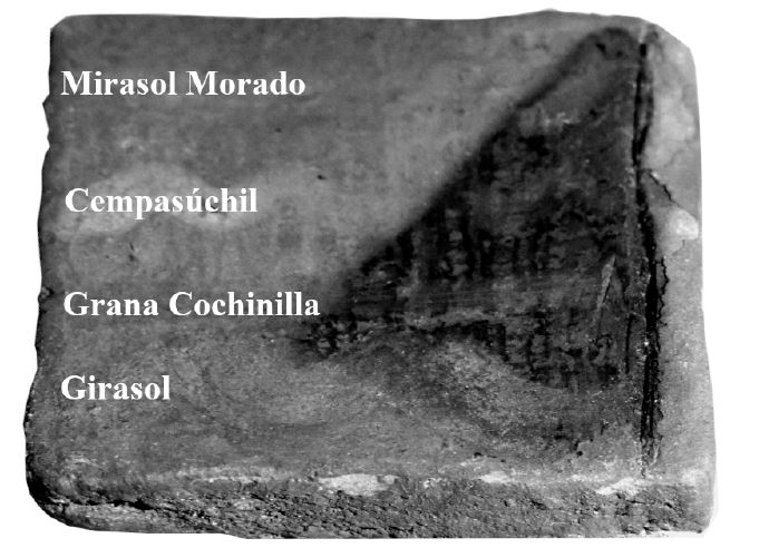 Sólo el bee plant y el girasol fueron experimentados por sugerencia del arqueoceramista Gregory Wood, quien los emplea en copias de la antigua cerámica del Suroeste de Estados Unidos (pueblo) y han sido registrados arqueológicamente [Adams et al. 2002; Toom 1992]. La elección de los otros recubrimientos experimentados se debió a las flores reportadas por Gallardo Ruiz [1984 apudAlarcón-Chaires 2009], así como Sahagún [1938]. Dichos recubrimientos son importantes en el contexto de fiestas y ceremonias, constituyen parte de la dieta de los antiguos pobladores o bien son empleados con uso medicinal. Juan Gallardo Ruiz ha investigado más a detalle algunos de los recubrimientos que hemos empleado experimentalmente, desde la perspectiva del uso ritual y medicinal; en el cuadro siguiente mostramos algunos de sus hallazgos.