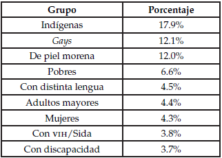 En cuanto a las personas que padecen más la discriminación y la intolerancia en la sociedad mexicana de mayoría heteronormada, se presenta a continuación el siguiente cuadro: