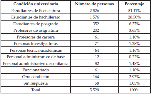 Por lo anterior, es indispensable realizar una experiencia como la que se dio en la UNAM para conocer los índices, las opiniones, así como las formas de interacción desarrolladas en los espacios universitarios. A partir de este diagnóstico, se tendrán más elementos para enfrentar y dar salida a los problemas que atraviesan los centros de educación superior.