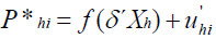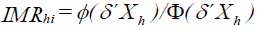 En la Ecuación 7, Phi es la variable latente que determina la decisión de la familia que participa en el mercado i. Es decir, la variable dependiente de cada probit es igual a 1 si cero ehi > 0 y en caso contrario. Xh es un vector que contiene