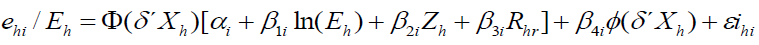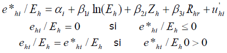 son parámetros del vector. El subíndice r indica las remesas internas e internacionales. e*hi / Eh es la variable latente correspondiente que rige la observabilidad de un porcentaje de gasto positivo. Este enfoque asume que un resultado igual a cero representa una solución de esquina.
