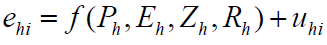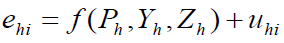 [1]Donde los subíndices h e i se refieren a los hogares y a las categorías de gastos,respectivamente; ehi denota los gastos en bienes i en cada hogar h; Ph es el vector de precios que enfrenta el hogar; Yh es el ingreso; Zh representa otras variables que influyen sobre las utilidades marginales y las limitaciones en materia de comportamiento de la familia (características de los hogares), y uhi es un término de error el cual se asume que está aproximadamente dentro de una distribución normal con media igual a cero y varianza