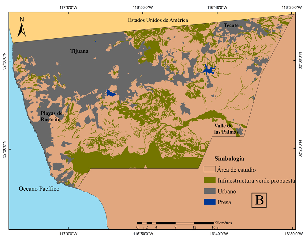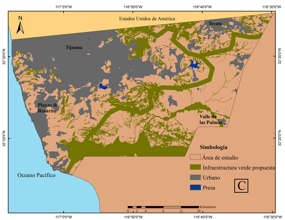 Con esta visión, el presente artículo expone los alcances de la planificación y el diseño del paisaje de IV enfocada a la mitigación de riesgos por inundaciones, derrumbes y deslaves y la conservación de la biodiversidad, en el contexto de la zona metropolitana de Tijuana-Tecate-Rosarito (ZMTTR) en Baja California, México. El objetivo es encontrar zonas adecuadas en áreas aún no desarrolladas para establecer IV, medir su grado de conectividad y determinar su grado de factibilidad en el marco legislativo actual.