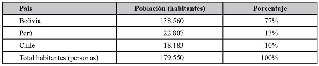 Los datos censales de los tres países (ver Tabla 1), manifiestan que dentro del área de influencia de Aymaras Sin Fronteras, “la población aliancista alcanza a 179.550 habitantes, de los cuales el 77% corresponde a bolivianos, 10% a chilenos y 13% a aymaras peruanos estas cifras son esquematizadas de la siguiente manera” (Vera, 2011, pp. 38-39):