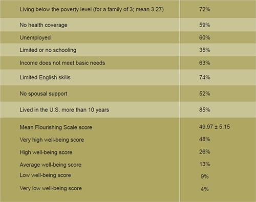 In contrast to studies that have focused on the pathologies of migrants, this study used positive deviance. This approach helps gain insight into the main factors that help Mexican immigrant women maintain a positive level of mental health and overcome adversity. A key conclusion of the analysis is that poverty, exclusionist immigration laws, stigmatization and discrimination are significant sources of adversity for Mexican immigrant women in the Paso del Norte region. These factors can create pronounced hardship in this population and can put their mental health at risk and yet, the participants thrive and demonstrate resilience and well-being.