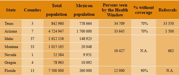 Despite all the efforts, there are still challenges in providing more specialized services at an affordable price. The following analysis will evaluate the services that VDS have had on providing basic health services to uninsured Mexican immigrants in the 50 Consulates, and in particular in Texas, Arizona, Idaho, Montana, Nevada, Oregon and Florida.