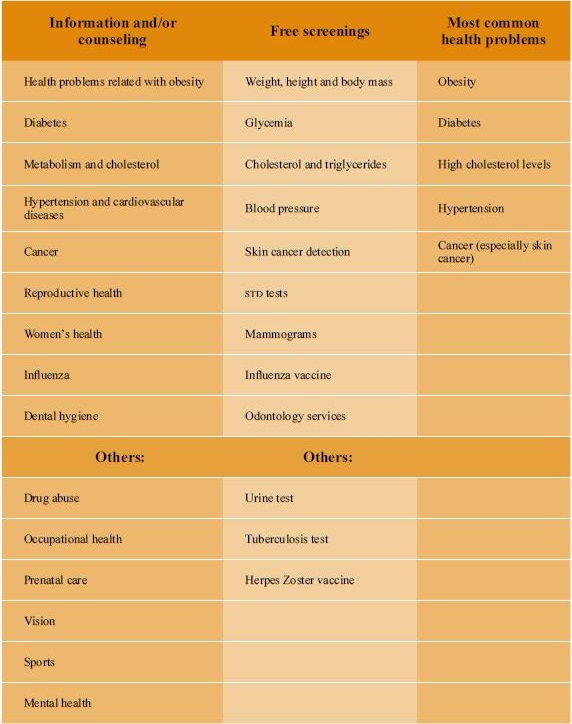 The Government of Mexico, through the Ministry of Health and the Ministry of Foreign Affairs, has set in place VDS within the 50 Consulates of Mexico in the United States. VDS aim to be fundamental in preserving the health of uninsured immigrants as they provide informational resources as well as basic screenings such as blood, sugar, cholesterol, body mass, sexually transmitted diseases (STD) tests, and vision tests. VDS also refer prospective patients to community health centers (Rangel et al., 2017; Rangel et al., 2016, p. 97; IME, 2016). In addition, there are two consular programs designed to serve the communities that live at considerable distances from the consulates or to approach locations where there is a high concentration of Mexicans, namely, Consulados sobre Ruedas (Consulates on Wheels) and Consulados Móviles (Mobile Consulates) (Secretaría de Relaciones Exteriores, 2014). Since the creation of the VDS program, bearing in mind a comprehensive service provision, the Government of Mexico has maked efforts in order to include health and other services through these consular programs, aside from their traditional main purpose of providing documentation services (passports and consular IDs mainly).