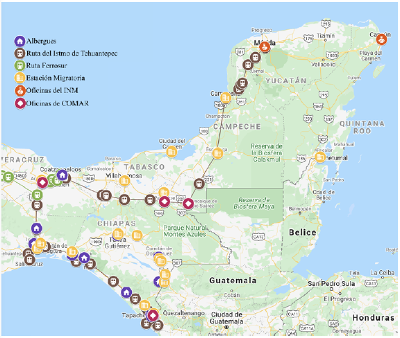 Médicos Sin Fronteras (MSF). (2020). Mapa ruta migrante. https://www.msf.mx/sites/mexico/files/-nuevo_map_ruta_migrante.pdf