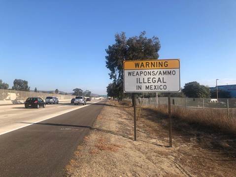 Un ejemplo adicional es en cuanto al uso y posesión de armas de fuego, incluidas armas de alto poder, permitida su venta y comercialización del lado estadounidense, y prohibidas en México. Resulta paradójico observar en las orillas del freeway de San Diego, y a unos pasos de la garita internacional, un anuncio oficial del gobierno estadounidense para viajeros que cruzan la frontera: “Medical marijuana prohibited into Mexico, prohibited into USA” y otro que advierte: “Guns are illegal in Mexico”.