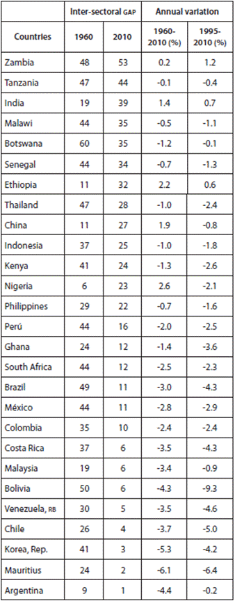 (2) Inter-sectoral gap3 = share of the labor force in agriculture - share of agricultural income