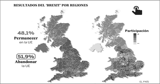 Ante lo expuesto, el ex primer ministro británico David Cameron impulsó durante su campaña política, convocar a un referéndum en aras de evaluar la continuidad de la membresía británica de la UE. Cabe mencionar que dicho referéndum tomó efecto el 23 de junio de 2016. Los resultados del referéndum sorprendieron a la opinión pública no solo europea, sino también mundial, debido a que la mayoría de los británicos votó por el fin de la membresía de las islas británicas en dicha organización.