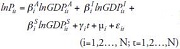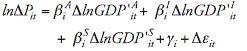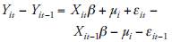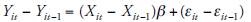 Where ∆ represents the first-differences operator. All other variables follow the same description given on equation (3). Note that the time-invariant error component (µi) has been removed from the equation and should not be confused with the time-trend yi, that lost its t component during the first-differences procedure since /.