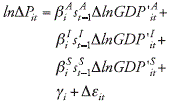 In order to correct this assumption, Ravaillon & Datt (1995) have proposed a specification that accounts for each sector's respective share in economy. This specification is also adopted by Ferreira e* al. (2009) while arguing that "the differential poverty impact of growth will naturally depend on the sector's size" (p. 25). By adding these considerations to the model, we reach the following specification: