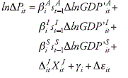 This specification, as already demonstrated, addresses the problem with omitted variable bias. However, by maintaining (9) as specified, this study might be working with an unrealistic assumption implying that the proportional impact of each sector on poverty is the same. To illustrate, let us imagine an economy where only 1% of its output come from the industry sector and 99% comes from agriculture; in that case, it would be risky - not to say wrong - to assume that the proportional impact of industrial growth on poverty would be the same as agriculture due to its considerable differences in terms of representativeness.