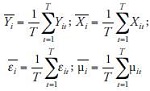In order to conduct the within estimation, individual-specific averages over time must be calculated, as (5) aim to illustrate: