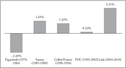 The new institutional arrangement played out well during the Sarney administration between 1985 and 1990 and continued during the short-lived administration of Fernando Collor's presidency between 1990 until 1992. The states, which used to have a veto power over national policies, saw their power diminished (Fenwick, 2009). Yet, the Federal Government was not able to support and monitor large-scale social programs until the macroeconomic fundamentals stabilized during Fernando Henrique Cardoso administration (1995-2003).