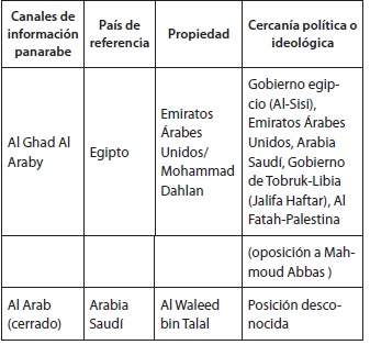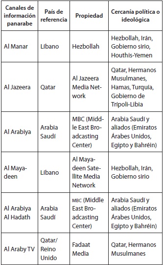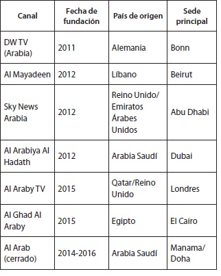 La apertura de nuevos canales de información en este contexto, consecuencia de la guerra en Siria, pero también de la situación posrevolucionaria en Egipto y de la guerra en Libia, ha ido exacerbando la dependencia y cercanía de estos medios de comunicación con sus propietarios, y ha ejemplificado su rol de herramienta en la proyección exterior de estos países (tabla 2).