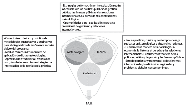 A pesar de que el Ministerio de Educación Nacional diferencia a las relaciones internacionales de la ciencia política (lo cual constituye un avance en el proceso de institucionalización y autonomía de la disciplina), en los aspectos curriculares específicos en términos metodológicos y profesionales no hay diferencias significativas. Posiblemente el único elemento diferenciador está en el aspecto teórico, en el que la resolución menciona que, en el caso de los programas de gobierno y relaciones internacionales, se deberá incluir el "estudio particular y transversal de los sistemas internacionales, las dinámicas regionales y problemas globales contemporáneos". Lo anterior es un bosquejo inicial de cómo el Ministerio de Educación Nacional entiende la enseñanza de las relaciones internacionales en el país. A continuación, se presenta el diagnóstico de los programas de pregrado en Colombia desde diferentes aspectos.
