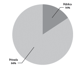 En Colombia la enseñanza de las relaciones internacionales a nivel de pregrado tiende a concentrarse principalmente en universidades de naturaleza privada. Resulta extraño que pocas instituciones de carácter público u oficial hayan asumido el estudio de las relaciones internacionales como parte de su oferta académica. De las 19 universidades con programas activos de pregrado en relaciones internacionales del país, 16 son de naturaleza privada y tan solo 3 de tipo oficial (los dos programas de la Universidad Militar Nueva Granada y el de la Escuela Militar de Cadetes General José María Córdova). Es decir, el 84% de la enseñanza en RR.II. se gesta en instituciones de carácter privado (ver figura 4).